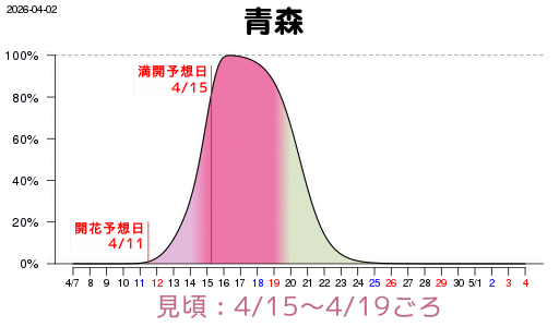 東北南部は、冬の寒さの影響がある地域ですが、それほど大きくありません。4月にかけて気温がかなり高くなる見込みで、平年より非常に早い開花となりそうです。