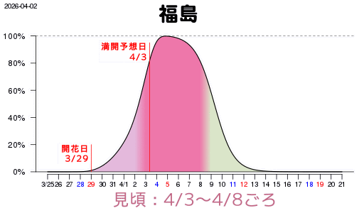 東北南部は、冬の寒さの影響がある地域ですが、それほど大きくありません。4月にかけて気温がかなり高くなる見込みで、平年より非常に早い開花となりそうです。