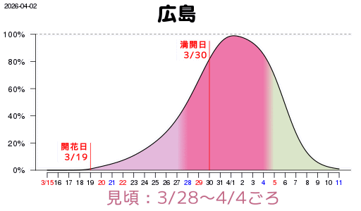 各地で見ごろとなってきていて、この週末がピークとなりそうです。今年の中国・四国のさくら開花は、平年より3日から5日ほど早いところが多くなりました。